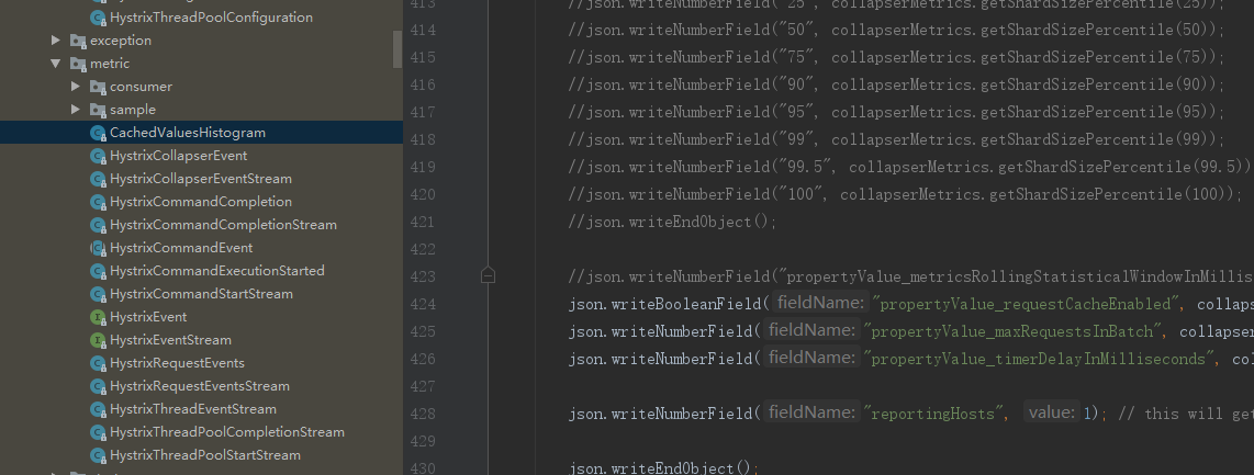 纵观整个 com.netflix.hystrix.metric package , 在重复使用这个套路,来完成各个指标的统计。 dome 中使用是一个Integer流, 但到实际项目中一般都是事件流,不停的产生事件,形成流。