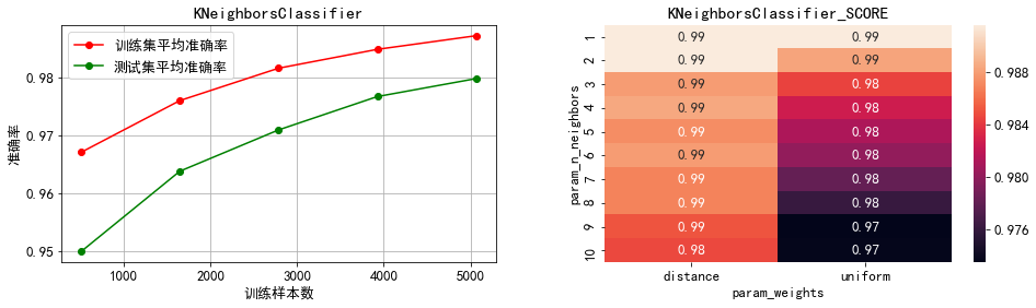 2)K近邻:最优近邻数为1,且通过热力图可以看出模型准确率随着近邻数的增加而下降,因而不需要再进行调参。