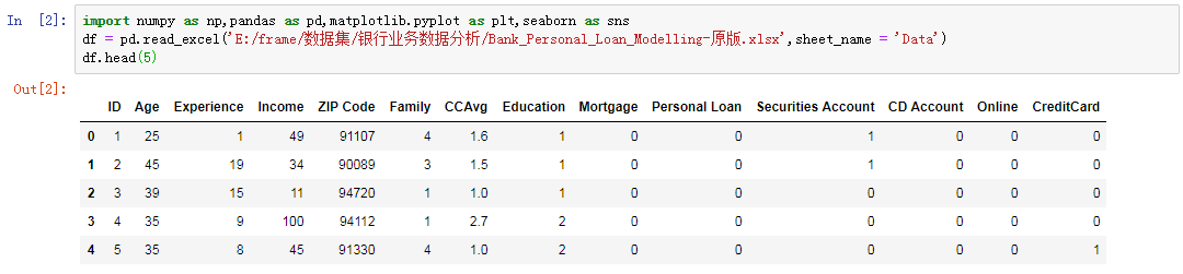 (1)数据来源:本项目所用数据来源于kaggle平台,该数据集展示了某银行某年一次贷款营销活动的5,000条客户信息记录。