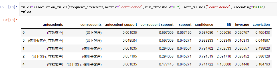 - 第三,运用Apriori关联规则算法分析了各类业务之间的关联,并重点总结出了存款客户中潜在个贷客户的特征。
