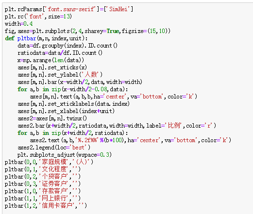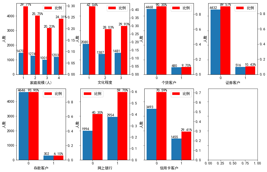 (3)基于上述Pearson相关性检验的结果,在分析客户画像时将不考虑与响应行为之间没有显著相关性的特征,即在分析存款客户画像时,将不考虑”家庭规模“和”文化程度“特征;在分析个贷客户画像时,将不考虑”证券客户“、”信用卡客户“和”网上银行“三个特征。
