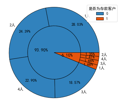 (2)既存款又个贷的客户与存款但非个贷客户在家庭规模上的分布差异