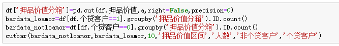 分析:从相关性矩阵散点图可以看出,存款客户中个贷和非个贷客户在年收入和月均信用卡消费额上的区分度比较高,具体来说,年收入在10.2万美元以上且月均信用卡消费额在3千美元以上的存款客户办理个贷业务的倾向非常强;在信用卡收入比方面,在0.65的水平以内二者的区分度不高,但超过0.65的水平后,非个贷的存款客户要多于个贷存款客户;在押品价值方面,存款个贷和存款非个贷客户的押品价值都集中在0值附近,进一步对押品价值分箱处理后发现,存款个贷和存款非个贷客户中绝大多数都没有住房抵押(押品价值为0),同时当押品价值高于40万美元后,存款个贷客户比存款非个贷客户要多。
