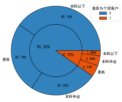2.4 个贷和非个贷客户在文化程度上的分布差异