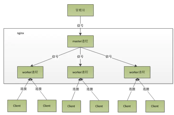 Nginx 启动后会有一个 Master 进程和多个Worker 进程,Master 进程主要用来管理 Worker 进程,对网络事件进程进行收集和分发,调度哪个模块可以占用 CPU 资源,从而处理请求。一般配置Worker进程的个数与机器cpu个数一致,从而打到cpu资源的最大化利用,也避免由于进程资源分配带来的额外开销。
