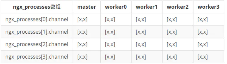 上表的每一列表示每个进程的ngx_processes数组的各个元素的channel成员。