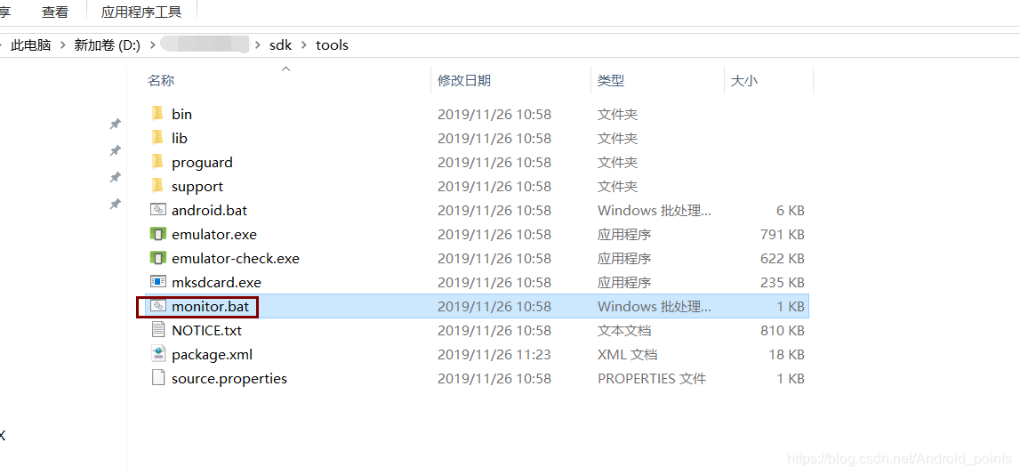 1、先找到AndroidStudio配置的SDK路径; 2、在SDK的/tools/路径下有个monitor.bat 的批处理文件; 3、鼠标连续点击两下monitor.bat这个批处理文件,在屏幕上会打开一个类似CMD的命令行中输入板,然后迅速自动关闭; 4、坐等1到3秒就会打开DDMS; 来源:oschina链接:https://my.oschina.net/hongjiang/blog/4396878 标签 ddms Android Studio