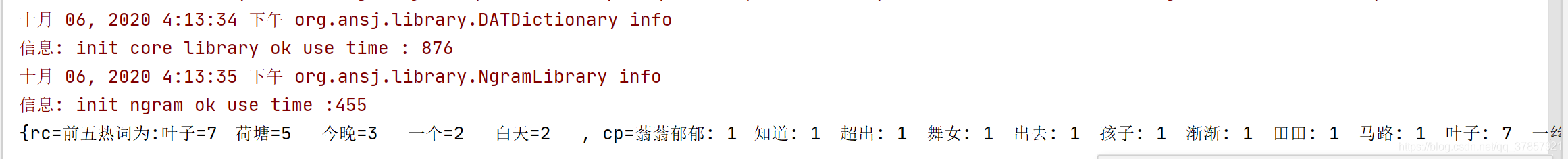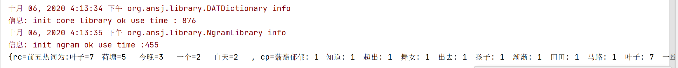 返回的是map ,前面是排序后的热词后面是所有词的统计。好了,到这里测试还没结束,因为中文/英文单语言实现还是非常简单的,如果中英混杂呢?