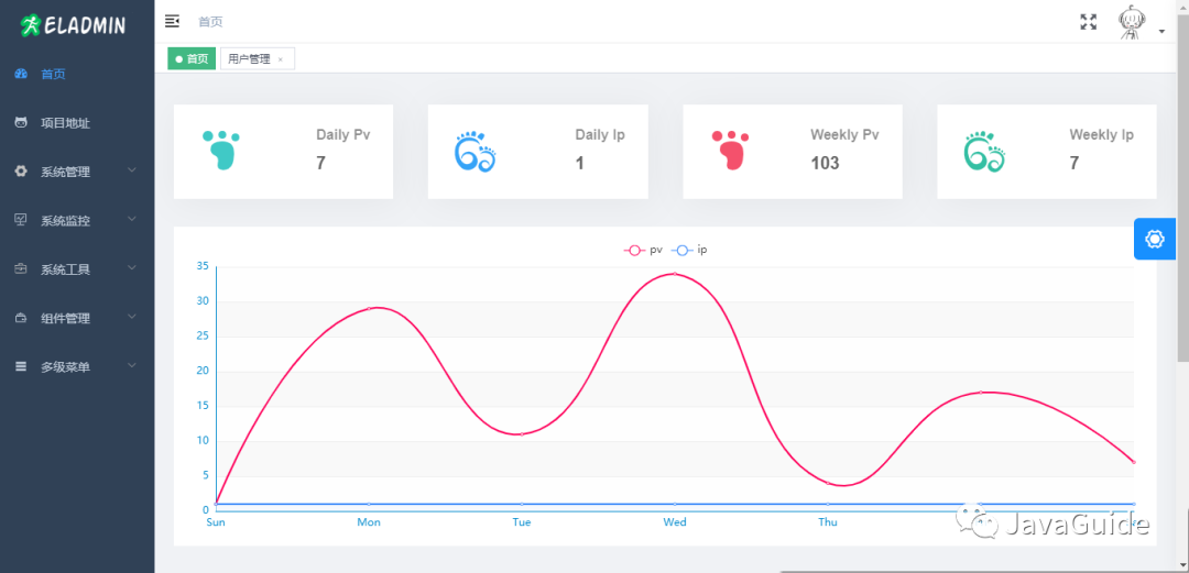 eladmin 是一款基于 Spring Boot 2.1.0 、 Jpa、 Spring Security、redis、Vue 的前后端分离的后台管理系统,项目采用分模块开发方式, 权限控制采用 RBAC,支持数据字典与数据权限管理,支持一键生成前后端代码,支持动态路由。