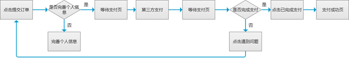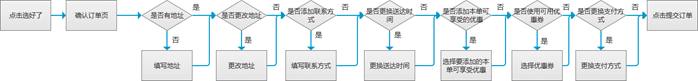 提交订单时,最快可以通过2次点击即可完成,这是最理想的情况。但是在这两次点击之间存在很多影响流程的信息和操作。