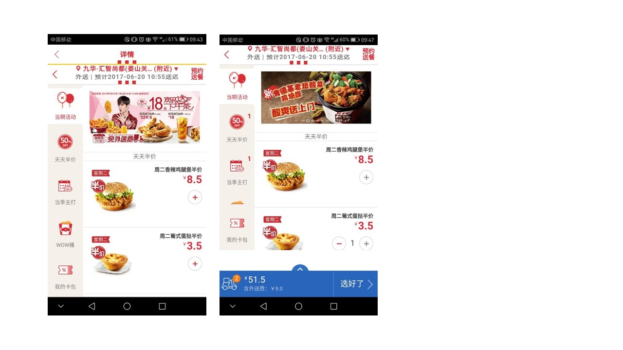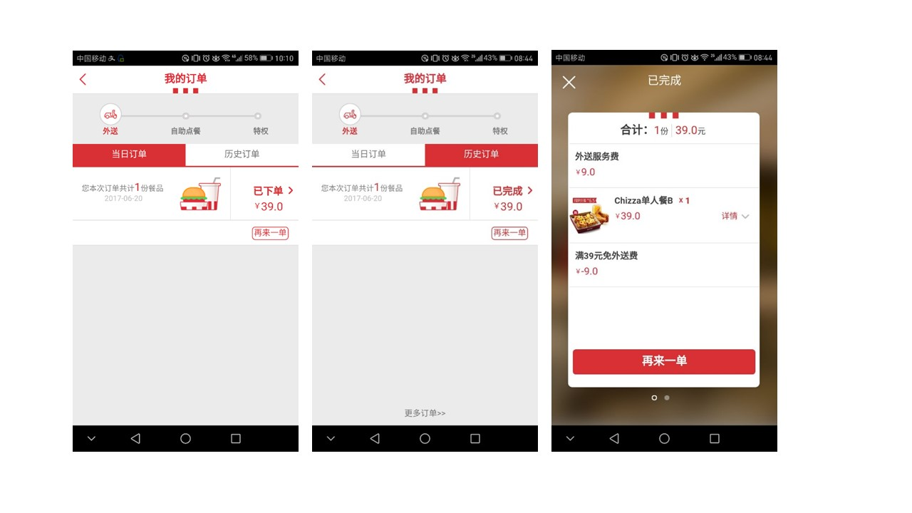 O2O的移动外卖已经成为大众点餐的主要方式之一,满足了用户足不出户就能享受美食的需求,作为传统快餐文化的领头羊,肯德基也顺势开始做独立app。据2017年3月,中国联通公布了沃指数之移动应用app,肯德基在送餐行业已经排名第二,超过了美团和百度两家外卖平台。