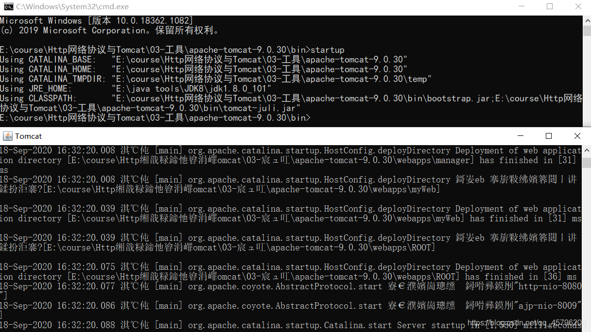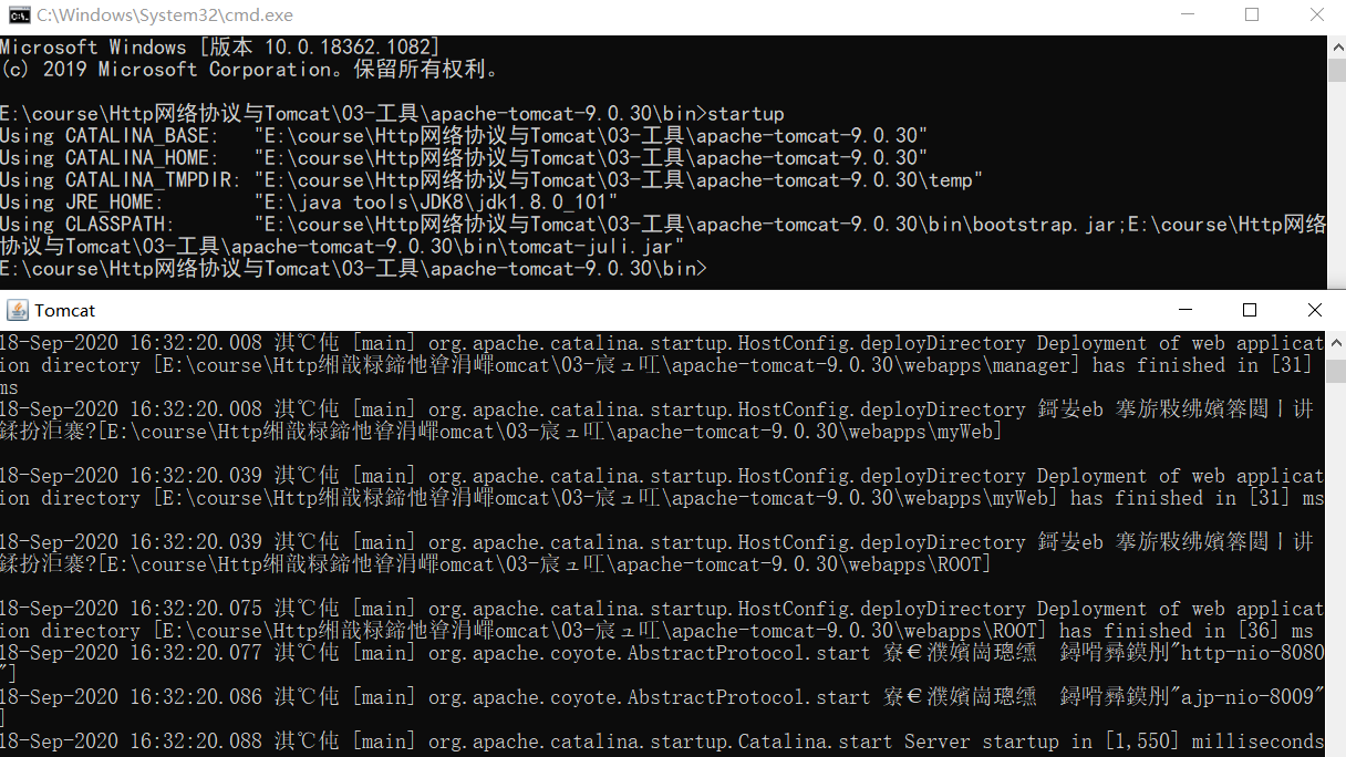 在apache-tomcat-9.0.30的bin目录下运行cmd