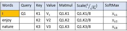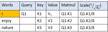 通过除以键向量维数的平方根来缩放点积。大小是64;因此,我们将点积除以8。