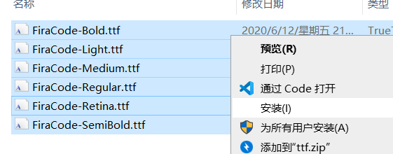 https://github.com/tonsky/FiraCode/releases/download/5.2/Fira_Code_v5.2.zip