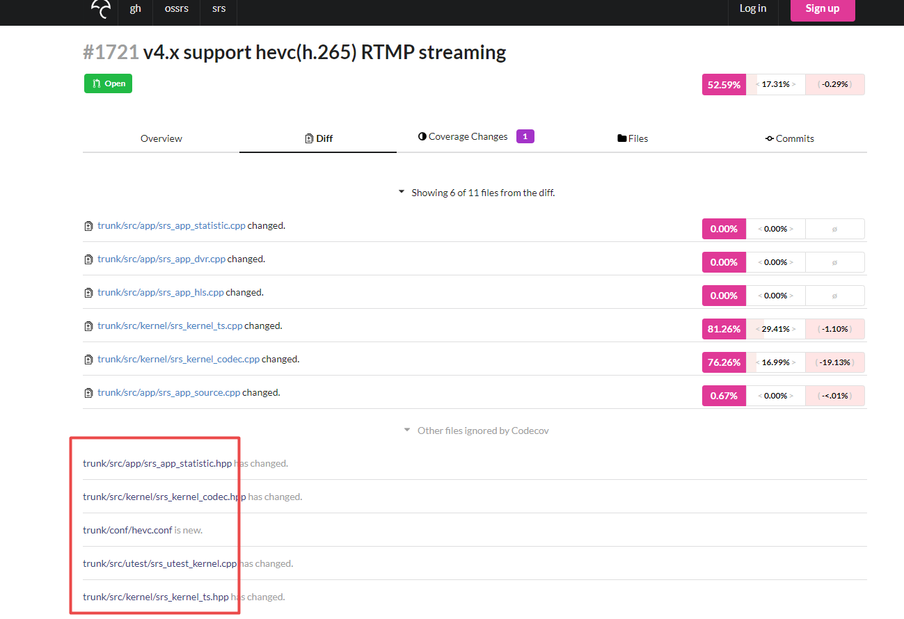 入口1:https://codecov.io/gh/ossrs/srs/pull/1721/diff