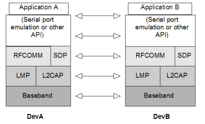 Device A是发起连接的主动房,所以Device A要至少支持Establish link and set up virtual serial connection.,Device B是被连接的乙方,所以要至少支持Accept link and establish virtual serial connection和Register Service record for application in local SDP database.以便Device A查询服务并且连接,但是此协议漏掉最主要的两个功能,发送数据,接收数据,或者SIG是觉得rfcomm做到了这个功能,所以不写在SPP协议中吧,但是我还是决定要在SPP介绍收发功能。