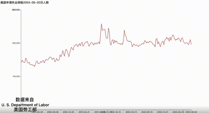 特别是这个由美国劳工部统计的失业救济人数动态图,也是引爆全网,从中可以看到自六十年代来,美国的失业救济人数一直是上下波动。而受这次疫情影响,美国失业救济人数像坐了火箭一般,一路飙升。