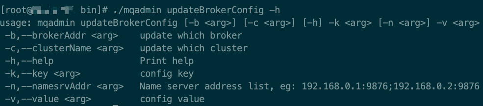updateBrokerConfig :动态更新broker的配置(重启broker后会配置失效)