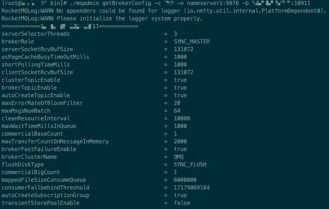./mqadmin getBrokerConfig -c CLUSTERNAME -n nameserver1:9876