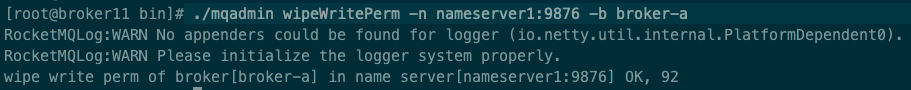 ./mqadmin wipeWritePerm -n nameserver1:9876 -b broker-a