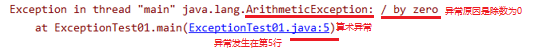 然后JVM将异常信息打印在控制台上(先不用关注其底层如何实现,知道是JVM在抛异常对象即可)。