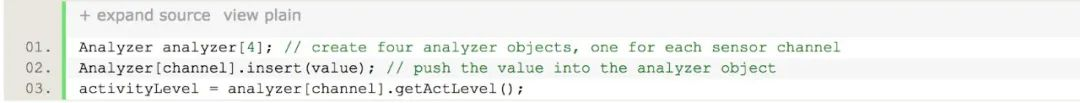 上述代码片段中的活动水平变量表示检测到的动作数量,即传感器是否在空中被按压。