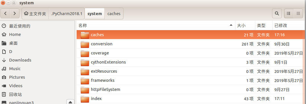1.删除:/home/dm/.PyCharm2018.1/system/caches,