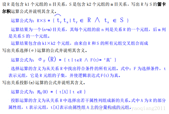 2. 关系的 5 种基本操作是选择、投影、并、差、笛卡尔积。