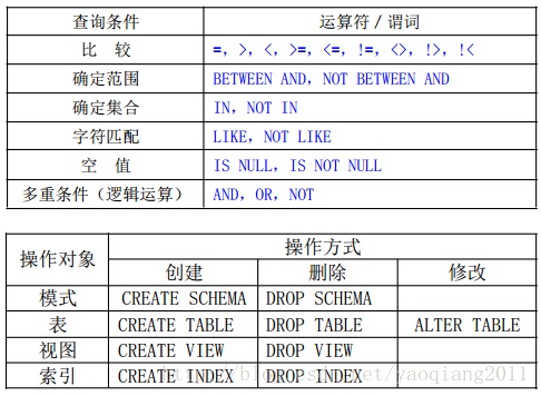 1. SQL 数据定义语句的操作对象有:模式、表、视图和索引。