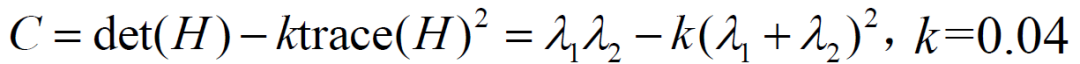 C = Harris矩阵的行列式值 – k(Harris矩阵的迹)2