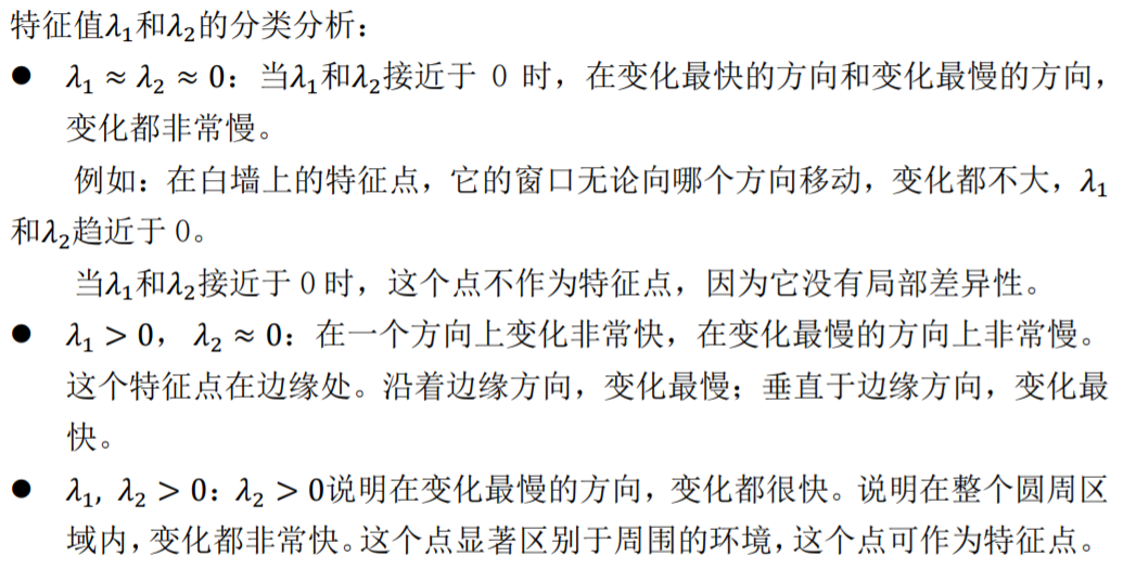 只有当Harris矩阵的两个特征值都非常大的时候,特征点才能和周围环境区别比较大,是我们想要的特征点。