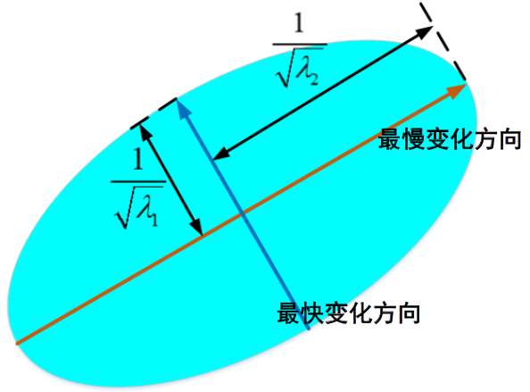 特征值对应的特征向量,确定了变化最快的方向和变化最慢的方向。其他方向的变化情况,介于这两者之间。