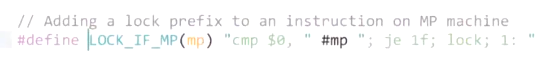 由两个红框的内容可以看到,底层的实现是CPU指令原语lock和cmpxchg组合执行的,值得一提的是cmpxchg指令虽然支持CAS,却并不是原子性的操作,所以我们看下LOCK_IF_MP是怎么操作的,实现的源码如下: