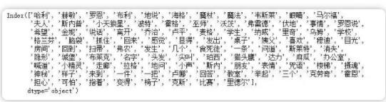 经过初次分词之后,我们发现大部分的词语已经ok了,但是还是有小部分名字类的词语分得不精确,比如说'布利'、'罗恩说'、'伏地'、'斯内'、'地说'等等,还有像'乌姆里奇'、'霍格沃兹'等分成两个词语的。