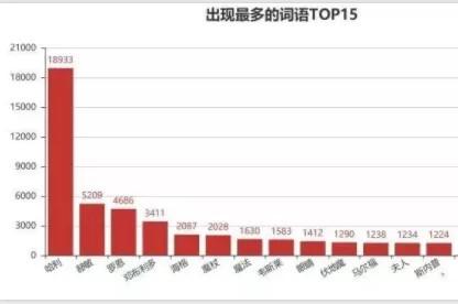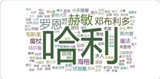 整部小说出现最多的词语TOP15中出现了哈利、赫敏、罗恩、邓布利多、魔杖、魔法、马尔福、斯内普和小天狼星等字眼。