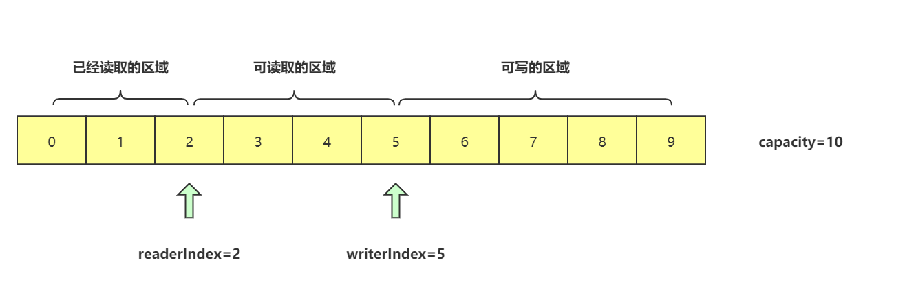 - [readerIndex, writerIndex):代表可以读取但还没读取的区域;