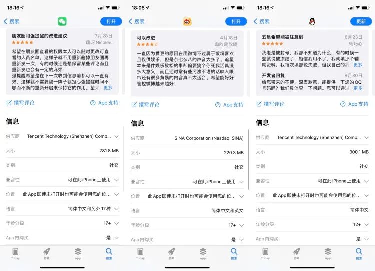 在应用商店里,如果你仔细看软件大小那一栏,会发现一般数值都大于 100MB,微信、QQ、微博、快手、抖音等常用 App 无一例外,游戏就更不用说了,它的单位是以 GB 来计算的。回顾 5 年前,一个 App 的体积通常也不过 50MB,有的软件甚至只有 10MB。