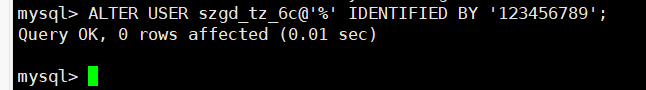 ALTER USER szgd_tz_6c@'%' IDENTIFIED BY '123456789';