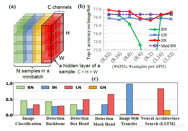 因此作者提出自适配归一化方法——Switchable Normalization(SN)来解决上述问题。与强化学习不同,SN使用可微分学习,为一个深度网络中的每一个归一化层确定合适的归一化操作。