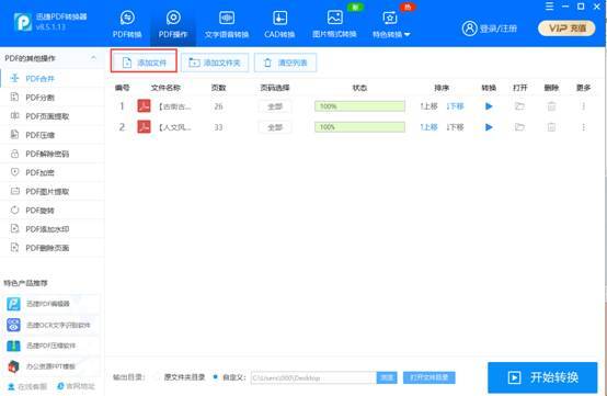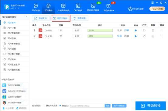 当然,你可以将这些需要合并的pdf文件添加到一个文件夹中,然后点击“添加文件夹”,这样就可以直接将几个pdf文件一起添加进来了。