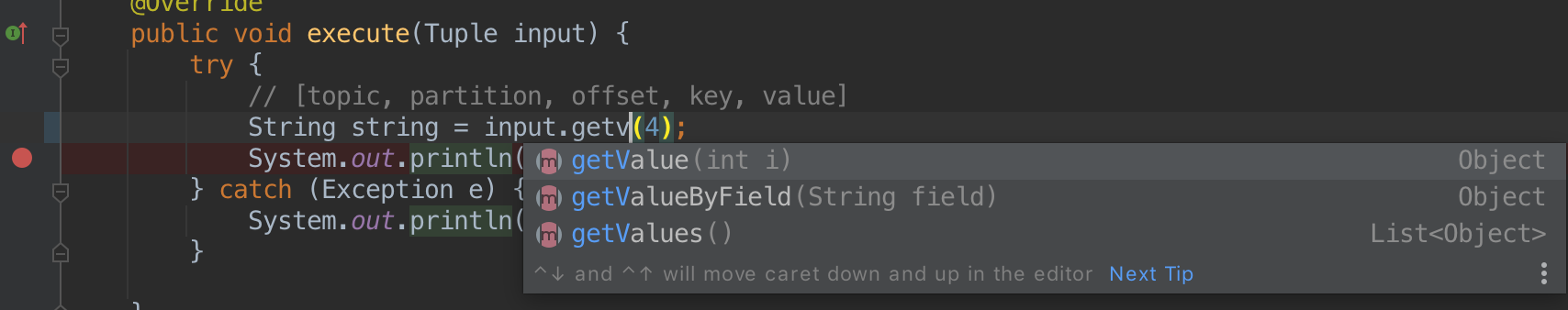 刚刚学的时候,若是知道这个返回obj类型的,然后再类型转换成你要的类型,数据在bolt之间传递,就方便多了。看图里面的几个方法名称,差不多能猜到返回的都是啥吧。