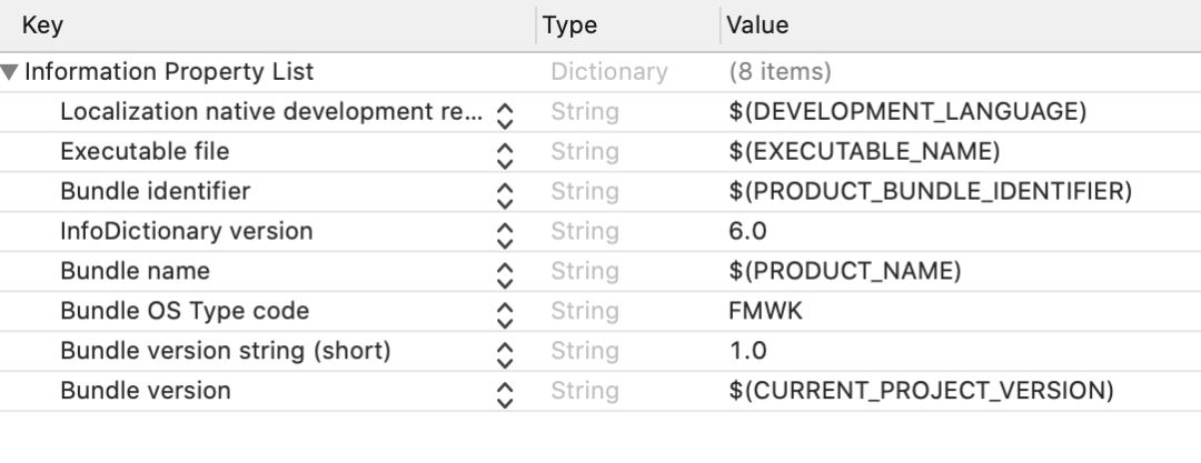 在默认情况下,Xcode 中的 Info.plist 文件在编辑器中如下方式显示: