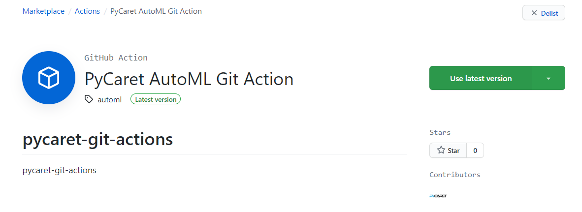 https://github.com/pycaret/pycaret-git-actions/blob/master/action.yml