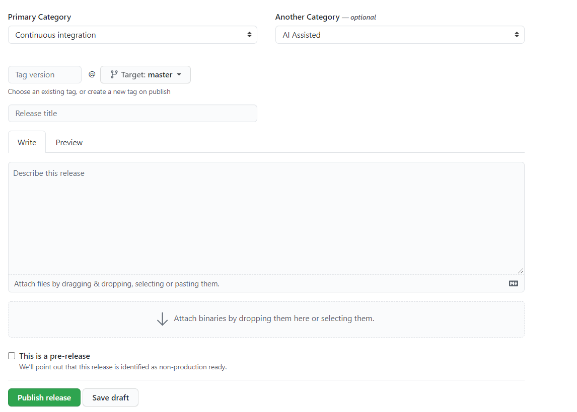 填写详细信息(标签、发布标题和说明),然后单击“Publish release”:
