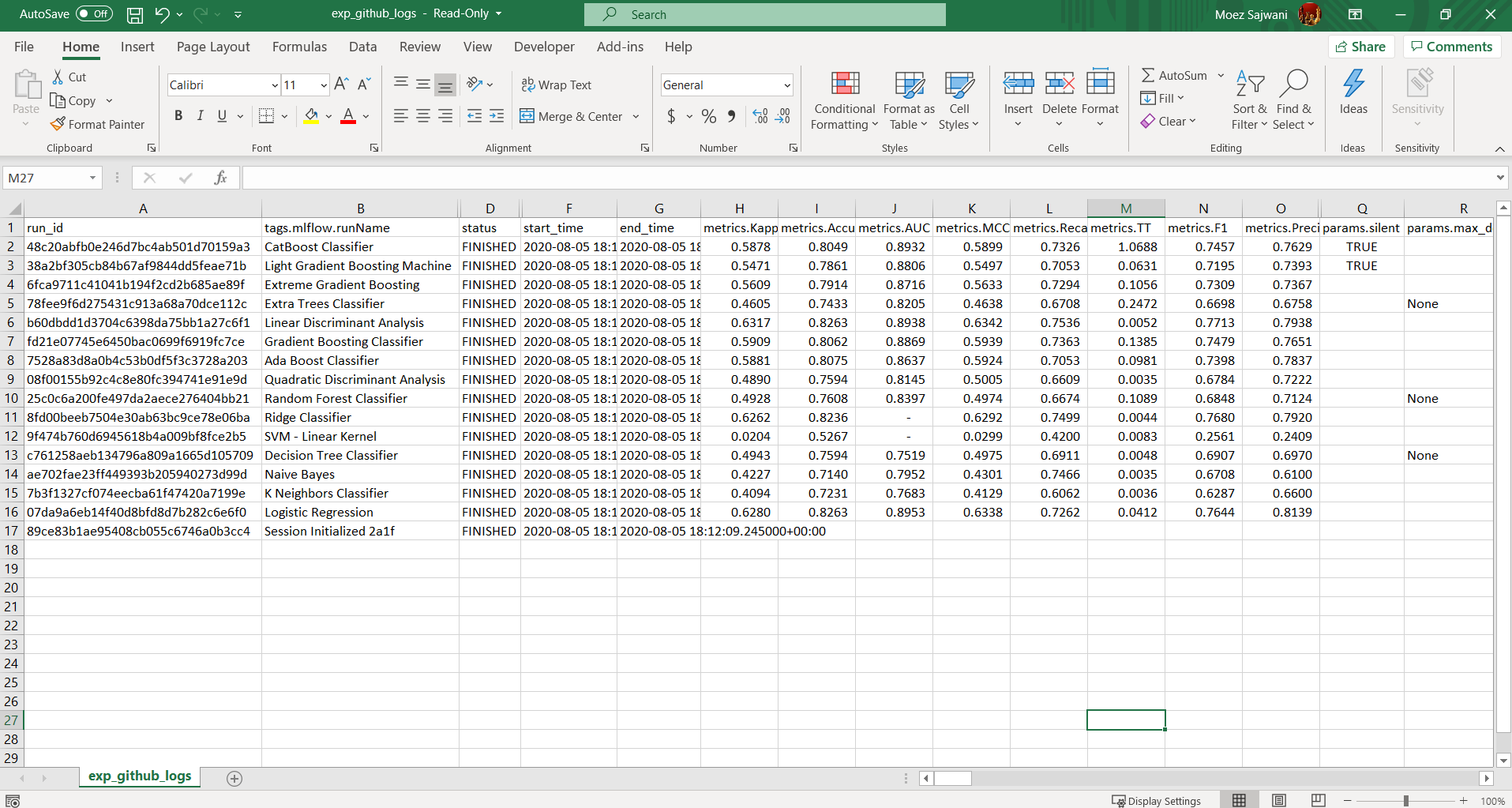 这是一个.csv文件,其中包含了模型所需的所有详细信息。它包含了在app.py中所有接受过训练的模型,它们的性能指标,超参数和其他重要的元数据。
