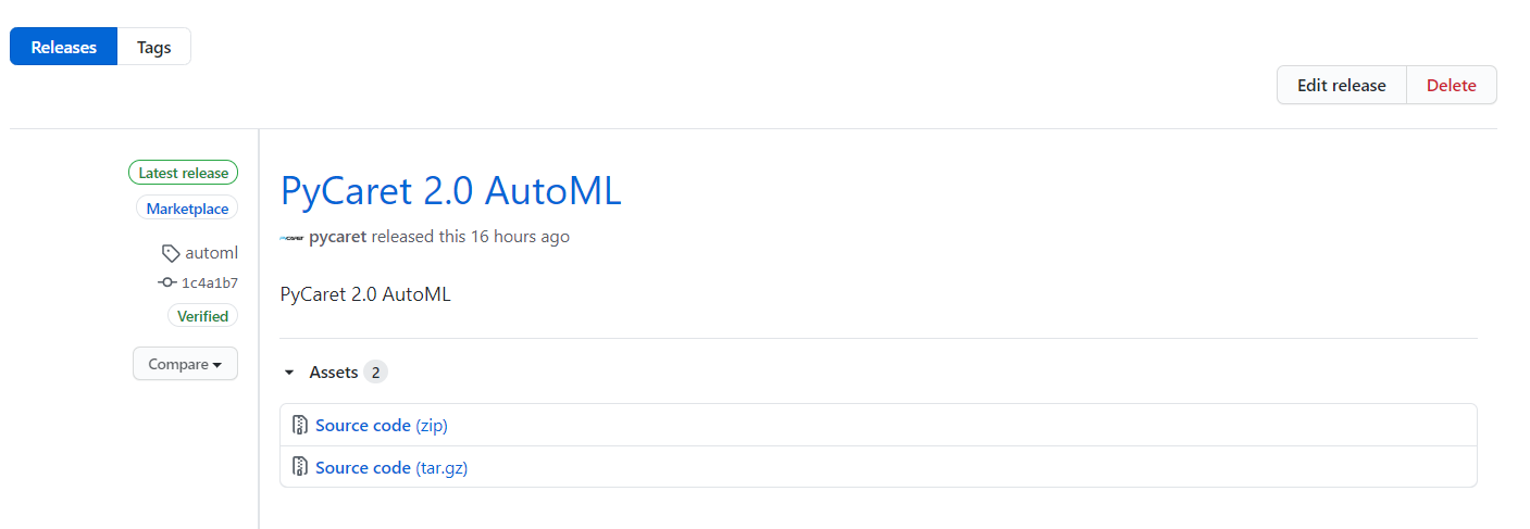如果你以前没有听说过PyCaret,可以在这里阅读pycaret2.0的官方声明:https://towardsdatascience.com/announcing-pycaret-2-0-39c11014540e,或者查看这里的详细发行说明:https://github.com/pycaret/pycaret/releases/tag/2.0。