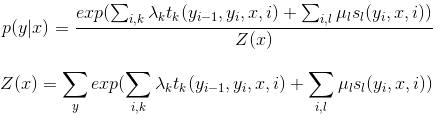 为了求解,我们需要将条件随机场使用数学公式表达出来。