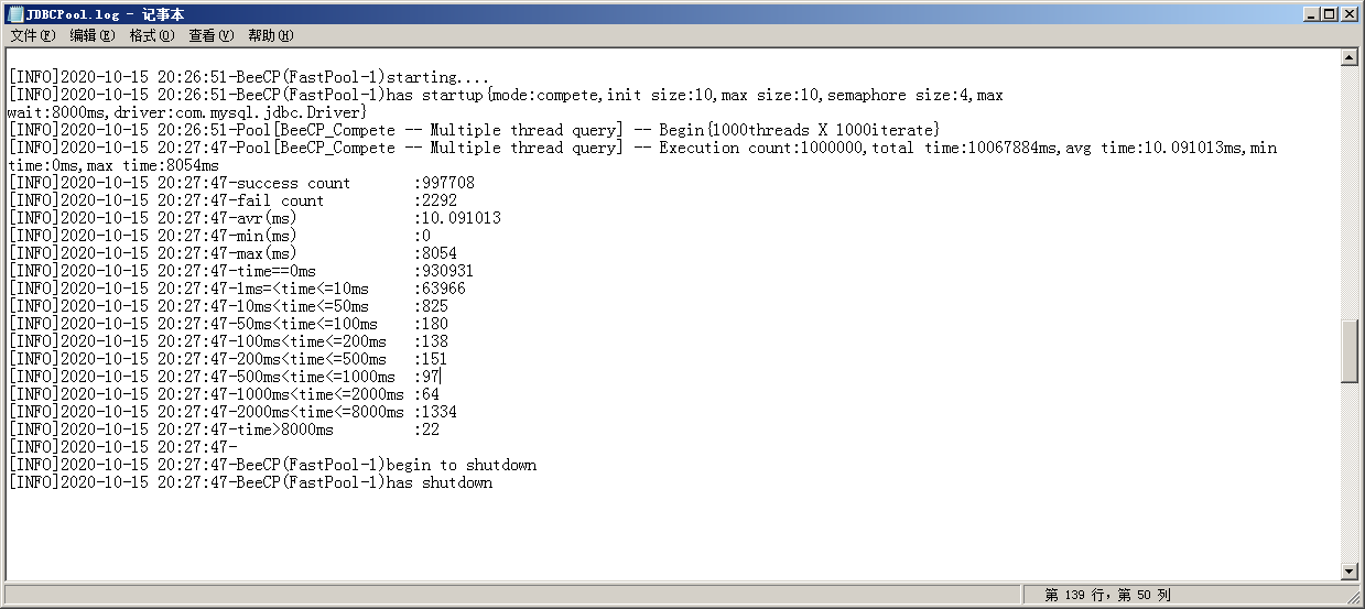 日志文件: https://github.com/Chris2018998/BeeCP/blob/master/doc/temp/JDBCPool-20201013.log