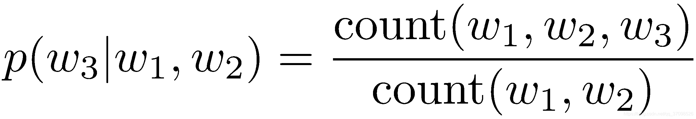 为了估计此条件概率,常用极大似然估计,比如对于Bigram和Trigram模型,有: