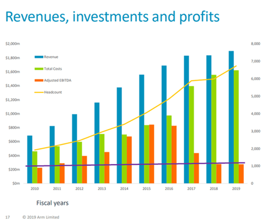 ARM公司2019年收入、投资与利润 资料来源:ARM